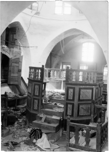 והנה מתאבך עשן מחניק מבית 'הדסה', ואחריו בוקעות להבות אדומות ומלחכות את כותלי האבן … פה ניפצו הפורעים את כל המכשירים הרפואיים, ואת בית המרקחת הרסו עד היסוד לבל יוכלו היהודים לרפא את פצועיהם … את הבית הציתו על כליו ורהיטיו לבל יישאר זכר למוסד החסד הגדול של היהודים אשר היה סמל לצדק אנושי – יום יום היו עשרות ערבים באים לכאן להתרפא חינם (עמ' 209).