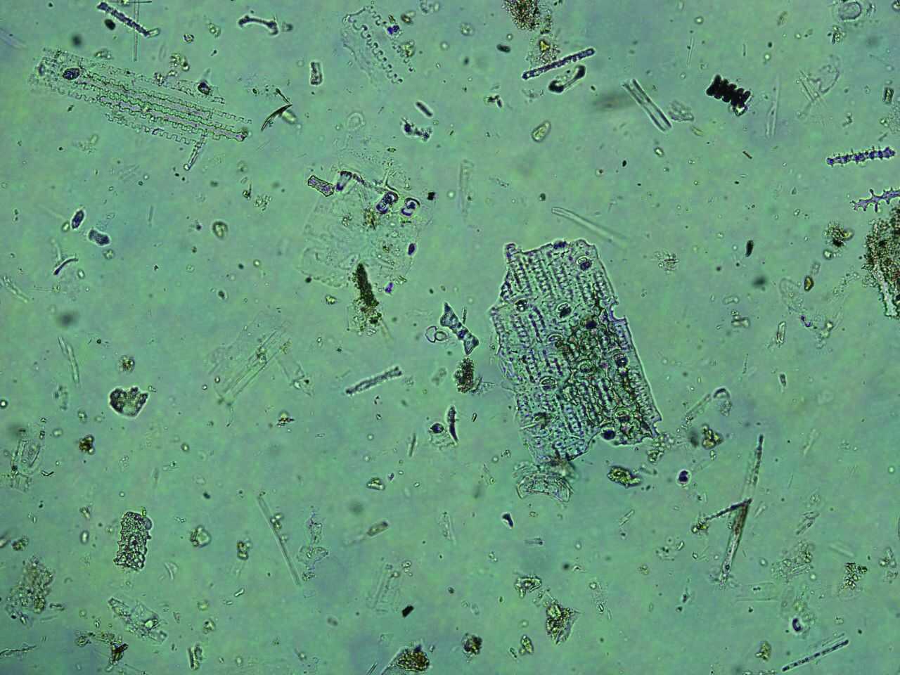 פיטוליתים תחת עדשת המיקרוסקופ. שאריות מאובנות של עלים וגבעולים מצמח ממשפחת הדגניים | באדיבות מרכז קימל למדעי הארכיאולוגיה, מכון ויצמן למדע