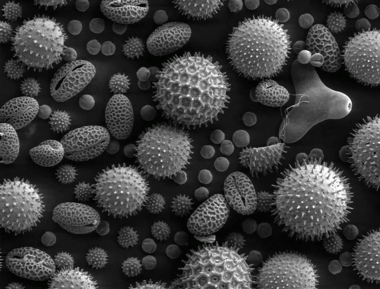 אבקנים מפרחים שונים, כפי שהם נראים בצילום של מיקרוסקופ אלקטרונים סורק