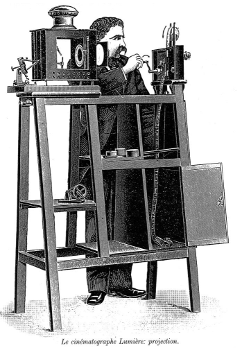 הסינמטוגרף היה מצלמה וגם מקרן לרצף של תמונות הקרוי בימינו ‘סרט’. בולי הוא שהעניק למכשיר את השם, שפירושו ביוונית ‘כתיבה בתנועה’. בשל מחסור בכסף מכר בולי את זכויותיו על הפטנט ועל שם המכשיר לאחים לואי ואוגוסט לומייר. ב-1895 הקרינו האחים את ‘היציאה ממפעלי לומייר’ שתיעד את הפועלים בעת יציאתם מהמפעל שהיה בבעלותם. זה היה הסרט הראשון בעולם והוא נמשך כחמישים שניות. הסרטים הראשונים הוקרנו על ידי סיבוב ידית באופן קבוע מול העדשה. האחים לומייר הרחיקו בשנים הבאות עם המכשיר המתוחכם אפילו עד הודו וסין. כבר ב-1897 הגיע המכשיר גם לארץ ישראל, ואלכסנדר פרומיו צילם סרט ביפו ובירושלים.