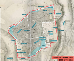 במפת ירושלים ששרטט האדריכל פרדריק קת'רווד ב-1835 ניכרים בשולי העיר שדות, שיחי צבר ומטעי זיתים ותאנים. גם במפה ששרטט הקרטוגרף ון דה ולדה ב-1858 סומנו שטחים חרושים, שיחי צבר וחורבות. קצין ההנדסה הבריטי צ'רלס ויליאם וילסון נשלח ב-1864 עם צוות הנדסי למפות את ירושלים. במפה שיצאה לאור ב-1865 בעקבות עבודתו אפשר להבחין בבירור בשטחים פתוחים בתחום העיר העתיקה, בעיקר בשוליים הפנימיים של החומה. בחלק משטחים אלה היו שדות ומטעים.