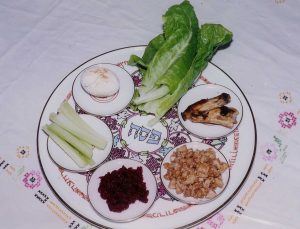צלחת הסדר כוללת שני ירקות ירוקים – מרור וכרפס. המצווה לאכול מרור מופיעה במקרא בהקשר של קרבן הפסח: