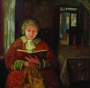הרמין דוד עם כובע כחולשמן על בד, 50X66 ס"מאמריקה, 1918אוסף פרטי