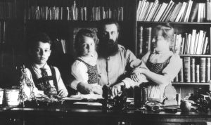 Often estranged from wife and family. Herzl in his study in Vienna with his children, Pauline, Trudy, and Hans, 1897
