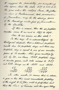Calculating redemption. Thirty prophetic days multiplied by 6 and 7 to produce a multiple of 1,260. In this letter to the grand duke, Hechler explains how he arrived at 1897–98 as the year of promised salvation